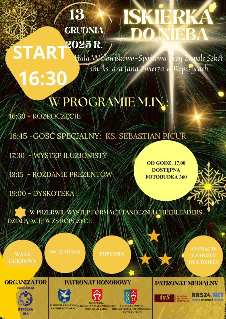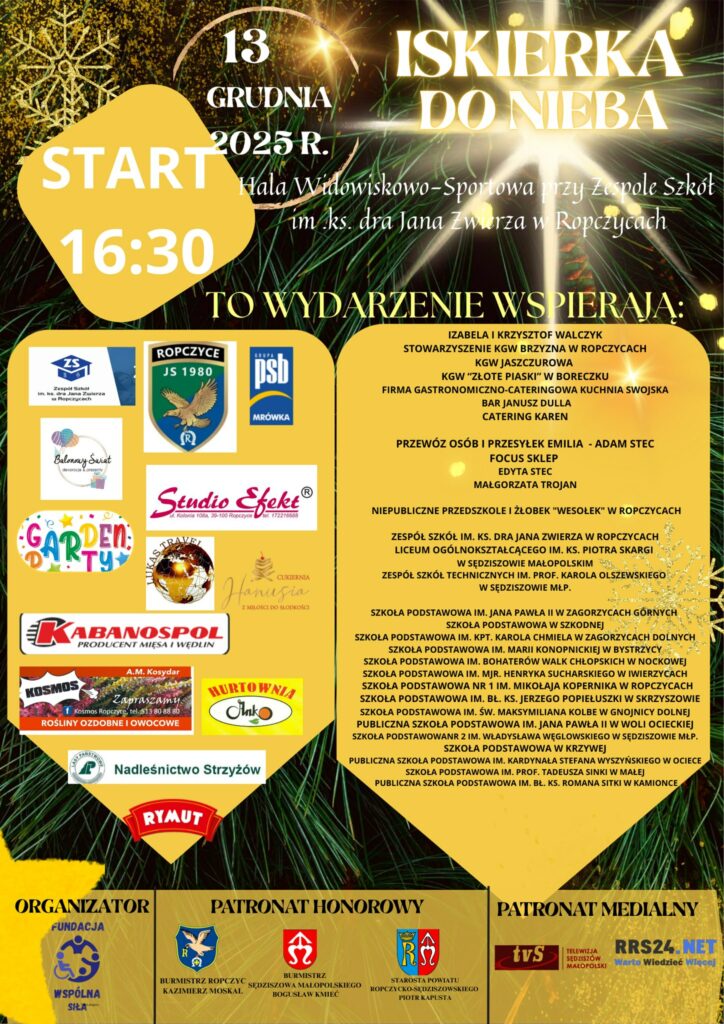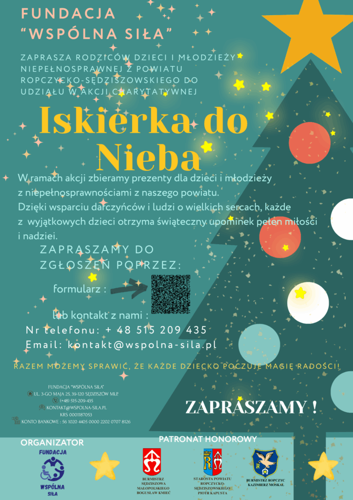📢 Fundacja „Wspólna Siła” zaprasza firmy, instytucje i osoby prywatne do udziału w akcji charytatywnej „Iskierka do Nieba”.